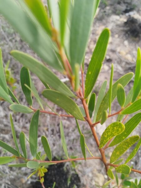 In an impressively dismal case of human utility gone awry, Rooikrans (Acacia cyclops, or ‘Roopitjie’ by the local vernacular) is an originally Australian shrub introduced to South Africa by the British around the 1850s to stabilise the shifting sand dunes of the Cape Flats, thereby aiding transport and expansion. Having few natural enemies it rapidly spread, thriving in the nutrient-poor soils and overwhelming the native fynbos. Rooikrans turned out to be a major threat to natural and rare dune vegetation as it grows prodigiously in those conditions – as well as in limestone fynbos, Sandveld and the critically endangered Renosterveld. Today Rooikrans has become a seemingly ineradicable feature on the rolling hills of the Western Cape, forming dense thickets that guzzle up groundwater and crowds out indigenous biodiversity. While difficult to quantify exact numbers of these trees, they’re extremely widespread. For context, there are over 370 invasive alien species heavily impacting the biodiversity of the Western Cape, and these are controlled under the National Environmental Management: Biodiversity Act (NEMBA), which lists over 381 plant taxa across South Africa. To the average person: Rooikrans is a ubiquitous braai-wood of choice. Farmers and conservationists on the other hand, usually at loggerheads on various contentious issues, are of one mind regarding the plant as a leafy cancer: devouring lands and choking waterways. CapeNature lists Rooikrans as the top invasive alien plant affecting the Western Cape province.