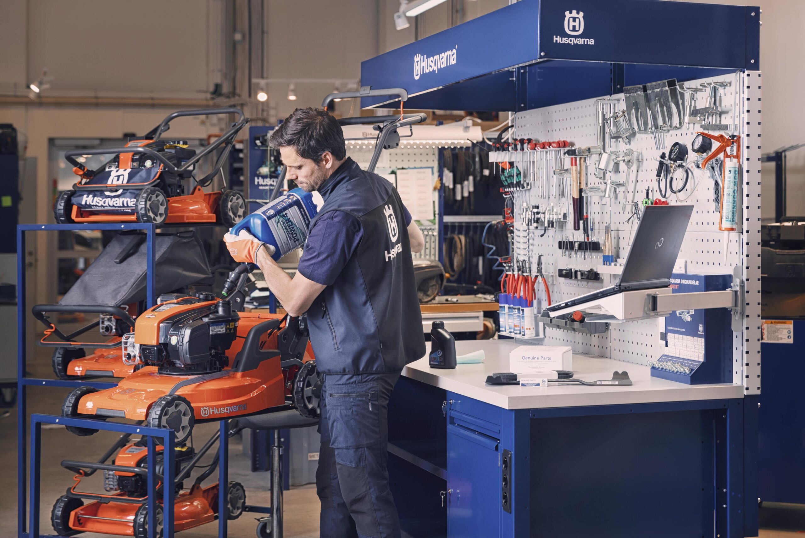Each service is performed by experienced technicians with product-specific expertise, using 100% genuine Husqvarna parts and accessories, including service kits, oils, and the brand’s own X-Cut saw chain, engineered for sharpness, durability, and low stretch.