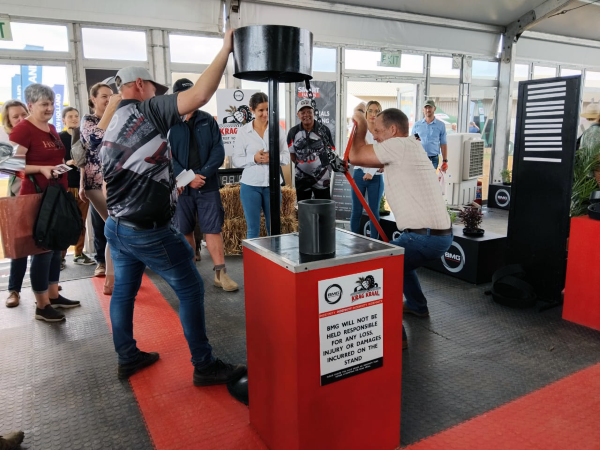 Nampo Cape 2025 - a customer tests his strength at the Krag Kraal competition (002)