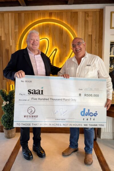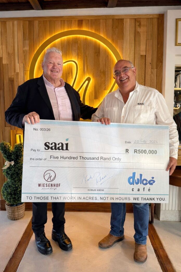 On Friday, 20 February at 08:00, Wiesenhof handed over a cheque to Saai at the Wiesenhof Coffee Shop in Franschhoek, a visible demonstration that every cup of coffee now forms part of a greater fight to save South Africa’s family farms.
